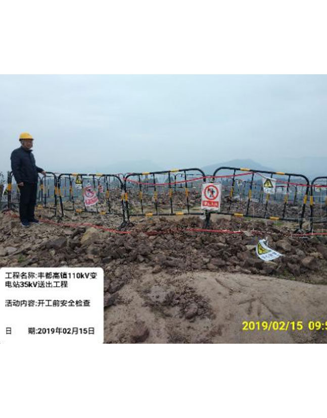 我司承接的國網(wǎng)重慶市電力公司豐都供電分公司建設(shè)的110kV變電站出線工程,全線長度5.38km(其中3.64公里為雙回架設(shè)、另1.74km為單回架設(shè))。施工過程中嚴(yán)格按照安規(guī)及相關(guān)規(guī)程執(zhí)行:1、施工準(zhǔn)備:公司及人員資質(zhì)報(bào)送及審核合格、施工人員安全學(xué)習(xí)并經(jīng)考試合格、工器具檢驗(yàn)合格。2、現(xiàn)場布置:安全圍欄、十不干、施工安全風(fēng)險(xiǎn)管控標(biāo)示牌等。3、施工作業(yè):召開班前班后會(huì)、三級(jí)風(fēng)險(xiǎn)關(guān)鍵人員到崗、已開挖坑口安全防護(hù)、人員上下基坑采用軟梯、施工用導(dǎo)線架空或下地敷設(shè)。