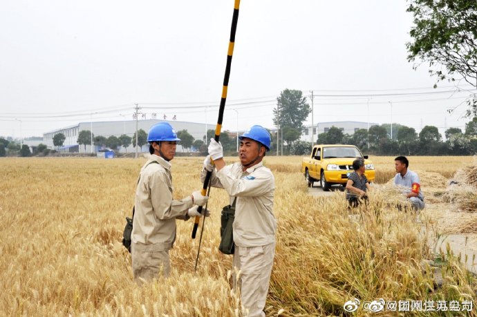 5月25日,國網(wǎng)高郵市供電公司員工與村干部在該市三垛鎮(zhèn)茆吳村為麥田里的電桿拉線更換防撞管,并提醒村民不要焚燒秸稈。夏收在即,高郵市政府發(fā)出秸稈“禁燒令”,國網(wǎng)高郵市供電公司的13個供電所與各鄉(xiāng)鎮(zhèn)村組掛鉤,一方面宣傳秸稈焚燒的危害性,另一方面宣傳電力設施保護知識。