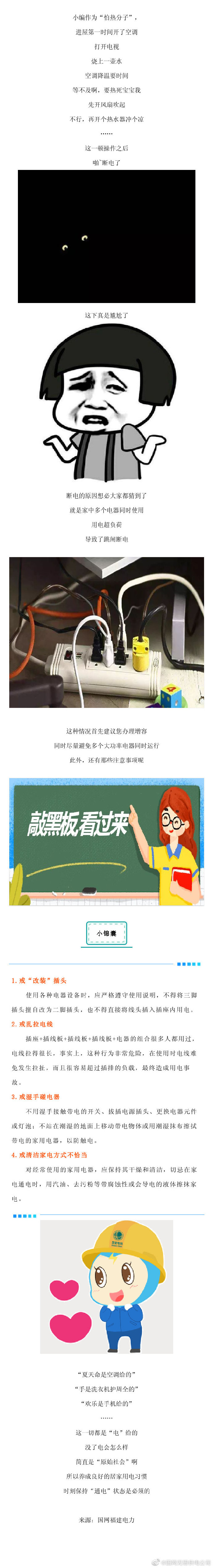 “燒烤“模式來(lái)啦,大家到家第一時(shí)間開(kāi)了空調(diào)、打開(kāi)電視、燒上一壺水,空調(diào)降溫要時(shí)間,等不及啊,要熱死寶寶我!先開(kāi)風(fēng)扇吹起不行,再開(kāi)個(gè)熱水器沖個(gè)涼……這一頓操作之后!啪~斷電了!斷電的原因:用電超負(fù)荷導(dǎo)致了跳閘斷電,咋辦?