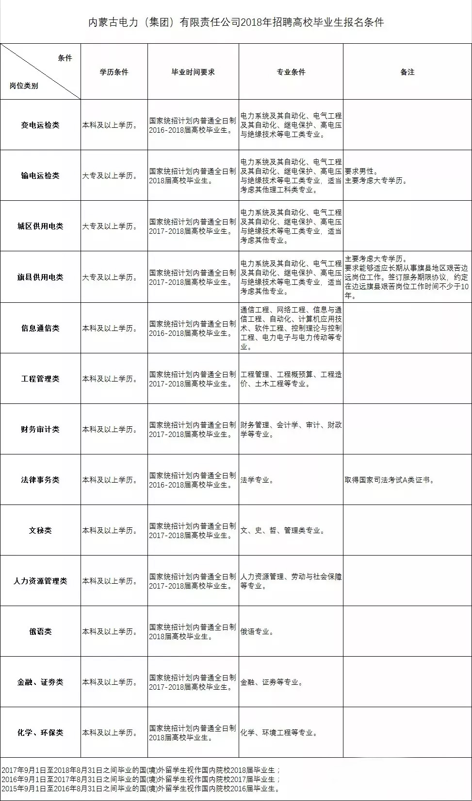 我們可以看到,蒙西電網(wǎng)是分崗位提招聘要求的,不同崗位對應(yīng)的學(xué)歷條件以及畢業(yè)年限要求不完全一致。