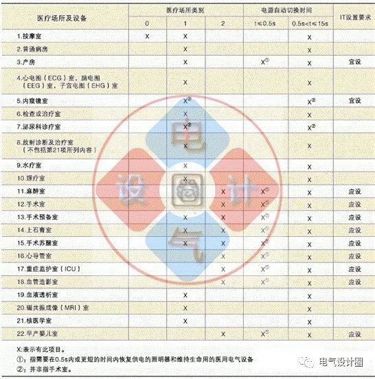 3.3、典型醫(yī)療場所低壓配電設計潔凈手術(shù)部為了保證用電可靠性,潔凈手術(shù)部根據(jù)防火分區(qū)及潔凈區(qū)的劃分,分別設置配電總柜。配電總柜設置在非潔凈區(qū),采用雙電源供電,其中一路引自應急母線,設置自動切換。后端經(jīng)UPS 后再分配至每個潔凈手術(shù)室的專用配電箱。手術(shù)室內(nèi)除手術(shù)臺驅(qū)動機構(gòu)及非生命支持系統(tǒng)的電氣設備外,對于其他醫(yī)療設備,均應用醫(yī)療場所局部IT 系統(tǒng)供電方式。另外,還需要注意,設置短路及過負荷保護。