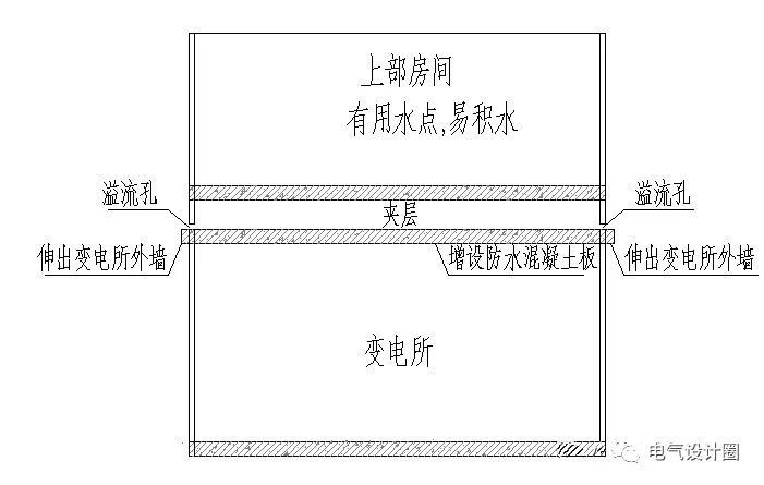 當(dāng)變電所頂部為室外地面時(shí),建議變電所頂部樓板室外要找坡利于排水,并采用其他加強(qiáng)防水做法。