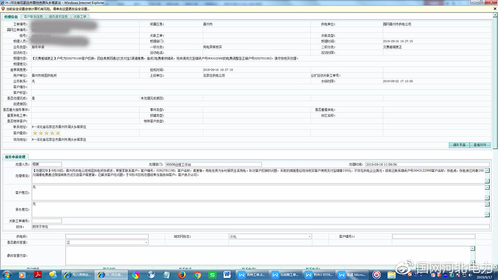 當知道自已交錯電費后,蔣女士非常著急,撥打95598電力服務熱線反映情況,希望能找回錯交的電費。晉州市供電公司桃園供電所職工朱倫、張輝波了解情況后,迅速通過用電系統(tǒng)查詢,確認100元電費交到了西臺村張先生的電費帳戶上。
