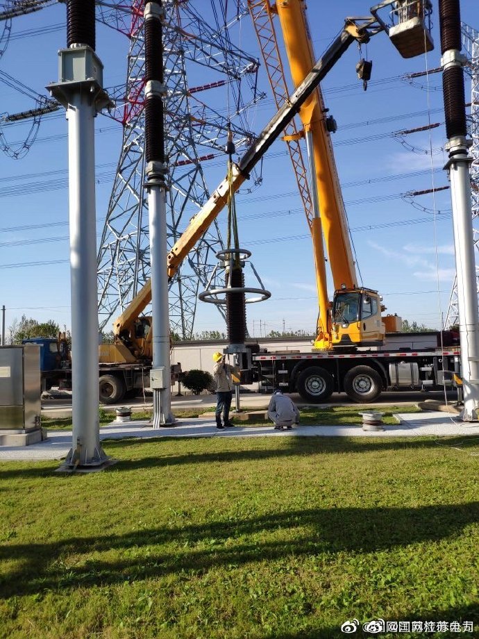 【更換避雷器底座,消除設(shè)備安全隱患】10月15日,國網(wǎng)江蘇檢修公司宿遷運維站變電修試班在500千伏鐘吾變按照停電檢修計劃開展避雷器受潮底座更換工作。檢修人員利用起重吊車拆卸受潮隱患底座,將新底座做好密封處理重新安裝,保質(zhì)保量完成秋檢任務(wù),保障電網(wǎng)安全穩(wěn)定運行。 ????