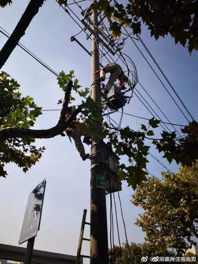 姜堰區(qū)供電公司組織施工隊對10千伏馬長線航道站支線安裝智能自動化開關(guān)