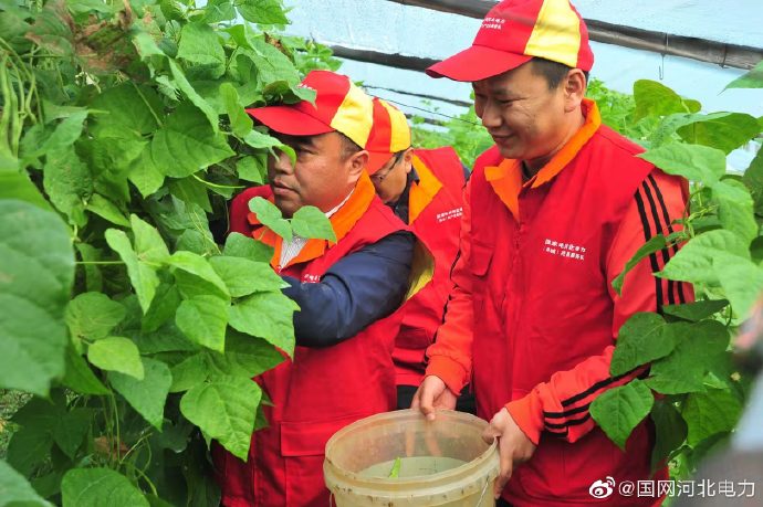 “消費扶貧愛心購,引進食堂幫增收。果蔬綠色無污染,口感香脆把手贊?!?0月23日,國網(wǎng)阜城縣供電公司駐鄧屯村幫扶工作隊把村民增收作為幫扶重點,開展了“電力扶貧愛心購”活動,并讓它們走上了咱食堂的餐桌,讓我們的電力職工也品嘗一下咱們自己扶貧助農(nóng)的愛心果實,得到了大家的一致稱贊。圖為國網(wǎng)阜城縣供電公司駐鄧屯村共產(chǎn)黨員服務隊在扶貧怡樂生態(tài)果蔬大棚幫種植戶采摘蔬菜。
