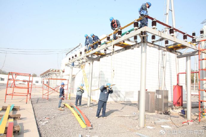 11月25日,在220千伏軹都變電站檢修現(xiàn)場,國網(wǎng)濟(jì)源供電公司工作人員正在安裝10千伏母線橋。