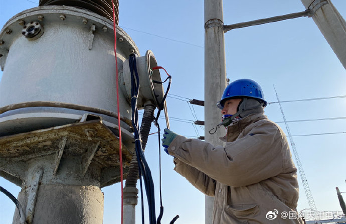 12月19日,國網天津電科院員工在大港電廠對110千伏電壓互感器進行周期試驗,確保電能計量裝置準確可靠運行。 ????