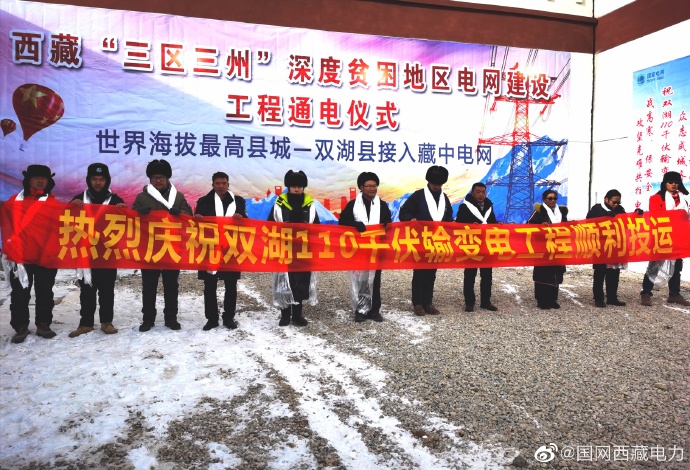 2月24日10時(shí)20分,海拔5000米的雙湖縣110千伏輸變電工程投運(yùn)現(xiàn)場(chǎng)一片歡歌笑語(yǔ),隨著電力員工合上最后一個(gè)開(kāi)關(guān),標(biāo)志著世界海拔最高的縣納入了國(guó)家電網(wǎng)主網(wǎng)覆蓋范圍,有力解決了該縣7300余名高海拔地區(qū)農(nóng)牧民群眾用電難的問(wèn)題。長(zhǎng)期以來(lái),雙湖縣一直處于電力孤網(wǎng)運(yùn)行,僅依靠光伏供電,供電可靠性差,電能質(zhì)量不高,為了讓更多的農(nóng)牧民群眾用上大電網(wǎng)的電,提高當(dāng)?shù)剞r(nóng)牧民群眾的生產(chǎn)生活用電水平,國(guó)網(wǎng)西藏電力實(shí)施雙湖縣“三區(qū)三州”深度貧困地區(qū)電網(wǎng)建設(shè)工程,總投資約6億元,新建110千伏輸變電工程2項(xiàng),線(xiàn)路長(zhǎng)度270公里,主變?nèi)萘?萬(wàn)千伏安;35千伏輸變電工程2項(xiàng),線(xiàn)路長(zhǎng)度123公里,主變?nèi)萘?000千伏安;10千伏中低壓工程涉及到4個(gè)鄉(xiāng)鎮(zhèn),新建10千伏及以下線(xiàn)路236公里,新增臺(tái)變21臺(tái),新增配變?nèi)萘?000千伏安,新建戶(hù)表1896戶(hù)。