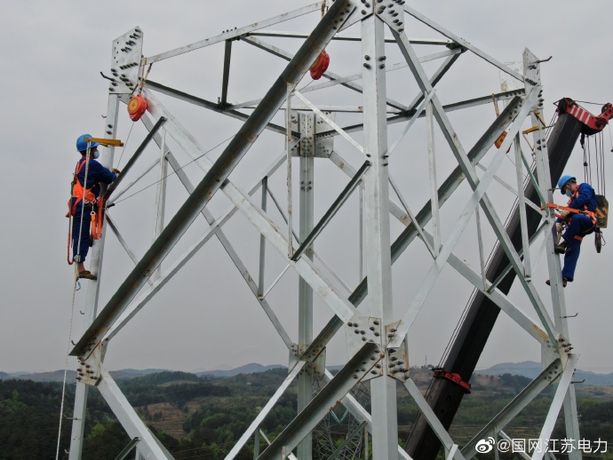 【首基鐵塔順利組立】3月26日,±800千伏雅江線湖南段鐵塔組立首基試點(diǎn)順利實(shí)施。江蘇省送變電有限公司施工項(xiàng)目部全體人員第一時(shí)間在做好防疫措施的基礎(chǔ)上,加強(qiáng)管理,精心組織,一手抓疫情防控,一手抓試點(diǎn)準(zhǔn)備,圓滿完成此次試點(diǎn)任務(wù)。此次試點(diǎn)既是湖南段也是整個(gè)雅江線工程的首次鐵塔組立試點(diǎn),試點(diǎn)后工程將進(jìn)入鐵塔組立階段,為實(shí)現(xiàn)2020年12月全線架通的目標(biāo)打下了良好的基礎(chǔ)。