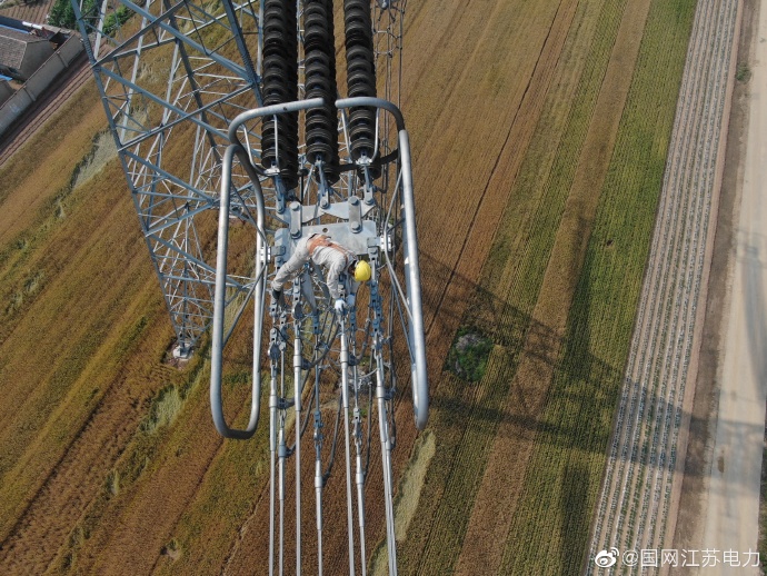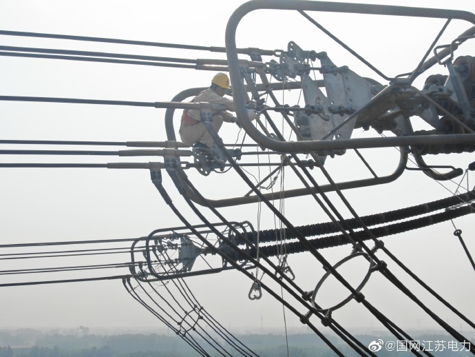 5月26日,為期11天的±800千伏錫泰線年度綜合檢修正式結(jié)束,江蘇省送變電有限公司特高壓運(yùn)檢分公司檢修人員正將線路上接地線拆除。本次檢修一共消除線路本體缺陷321處,更換零值及破損瓷瓶18片?!?00千伏錫泰直流未來將以一個(gè)更加良好的狀態(tài)為江蘇大地輸送能源。