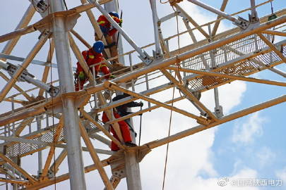 神木750千伏變電站構(gòu)架吊裝提前告捷 5月28日11時50分,陜北黃土高原上的青天薄云下,隨著一臺260噸履帶吊和一臺70噸汽車吊平穩(wěn)落勾,由@陜西送變電公司?負(fù)責(zé)施工的神木750千伏變電站750千伏構(gòu)架吊裝工作,歷時32天,提前近1個月完成計劃任務(wù)。神木750千伏輸變電工程本期750千伏構(gòu)架吊裝包括58根格構(gòu)式構(gòu)架柱、54根格構(gòu)式梁走道,鋼材總重約2050噸。最高高度61.02米,是目前陜西所有750千伏變電站構(gòu)架吊裝量最大的項目
