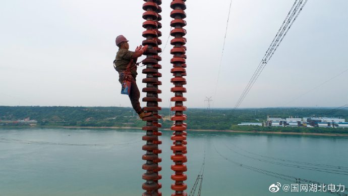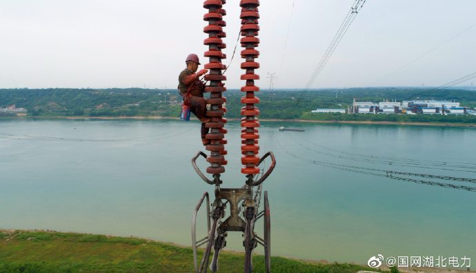 晴日暖風(fēng)時,高空檢修忙。5月27日,國網(wǎng)湖北檢修公司荊門運(yùn)維分部檢修人員在宜昌市紅花套鎮(zhèn)500千伏宜興一二回長江大跨越區(qū)段,對絕緣子進(jìn)行PRTV涂料,給其穿上“新衣”提高線路設(shè)備的防污能力,保障線路設(shè)備穩(wěn)定運(yùn)行,確保可靠保電。
