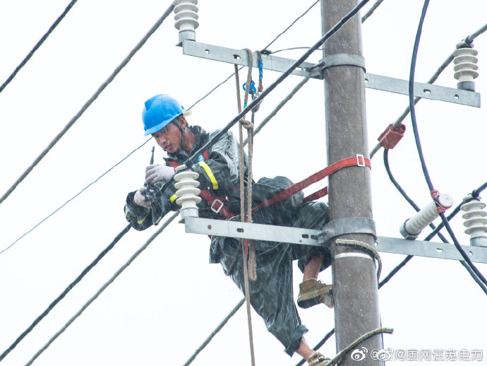 6月15日上午10時,國網(wǎng)靖江市供電公司組織搶修人員冒雨搶修遭雷擊的10千伏文鎮(zhèn)線上六2號變壓器支線,確??蛻艋謴?fù)用電。 ????