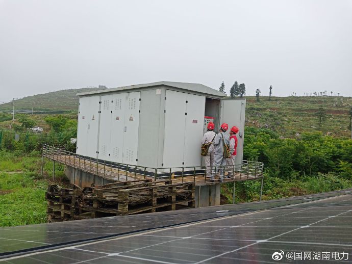 6月11日,國網(wǎng)永順縣供電公司為了確保永順縣紫陽扶貧開發(fā)建設(shè)有限公司旗下的光伏電站在汛期正常安全運行,特派技術(shù)人員對該光伏發(fā)電站的變壓器、電力線路等電力設(shè)施進行巡視維護,確保扶貧產(chǎn)業(yè)增產(chǎn)增收,為扶貧工作助力。