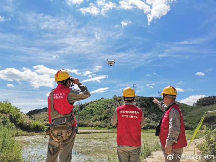 6月17日11時,在位于湖北黃石市陽新洋港鎮(zhèn)巖上村的35千伏洋河線029桿塔的山腰,國網(wǎng)黃石供電公司輸電運(yùn)檢黨員服務(wù)隊員冒著37度的高溫,在炎炎烈日下操控著無人機(jī)認(rèn)真巡檢這條排澇電源線路,助力提升主網(wǎng)輸電線路安全運(yùn)行。