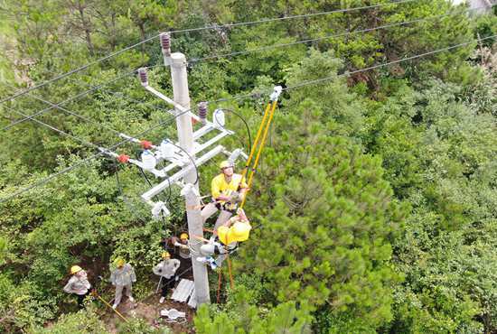 6月28日,9米電桿之上,近3米長、4公斤重的絕緣操作桿,被穿著黃色絕緣服的兩名帶電作業(yè)人員人手一根穩(wěn)穩(wěn)持住,這次帶電作業(yè)在10千伏天湖線展開。由于該線路所處位置為山林,道路狹窄,林木茂盛,絕緣斗臂車無法進(jìn)入,而停電作業(yè)又會影響周邊居民用電。@國網(wǎng)玉環(huán)市供電公司?在經(jīng)過前期細(xì)致查勘后,采取應(yīng)用較少的絕緣桿操作法,帶電作業(yè)人員做好安全措施,兩兩一組上桿,在現(xiàn)場安全監(jiān)護、地面作業(yè)人員的緊密配合下,有條不紊操作,歷時3小時,順利完成線路帶電搭接,確保了近10臺變壓器、2000多用戶的可靠供電