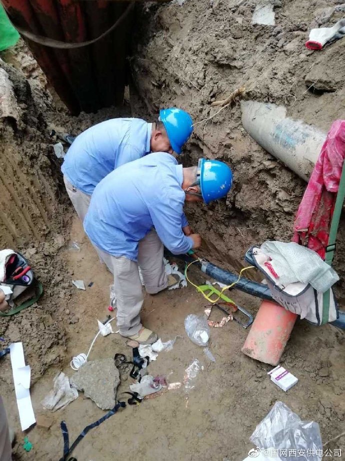 8月15日,國(guó)網(wǎng)西安市鄠邑區(qū)供電公司工程施工人員從轄區(qū)龐光線完成施工任務(wù)返回途中接到搶修任務(wù),將疲憊的身體迅速調(diào)整回好狀態(tài),他們又一次投身故障現(xiàn)場(chǎng)場(chǎng)奮力搶修。因外力破壞電纜導(dǎo)致國(guó)防學(xué)院停電,施工人員經(jīng)過(guò)現(xiàn)場(chǎng)勘察確定故障點(diǎn)后,迅速開(kāi)挖土方,實(shí)施搶修作業(yè),為了迅速恢復(fù)供電,他們爭(zhēng)分奪秒,盡量縮短停電時(shí)長(zhǎng),于夜晚10:30恢復(fù)供電。