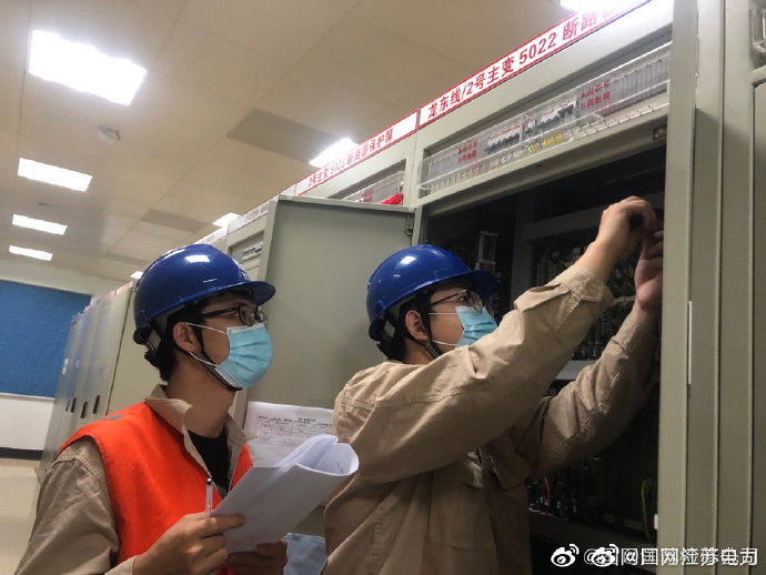 9月3日,在500千伏龍王山變電站,國(guó)網(wǎng)江蘇檢修公司變電中心二次一班人員進(jìn)行龍東5261線路保護(hù)校驗(yàn)工作。檢修人員對(duì)屏內(nèi)端子排進(jìn)行螺絲緊。