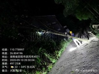 9月10日傍晚,一場不期而至的狂風暴雨吹倒了一棵大樹,倒在大路坪#2變臺區(qū)低壓線路上。國網武岡市供電公司大路坪供電所的值班人員迅速趕到現場處置倒樹,保證了客戶安全、放心用電。(劉謀雄 鄧勇)