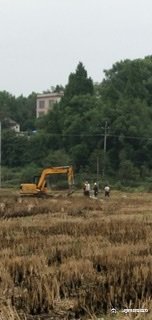 大路坪供電所農(nóng)改施工隊在新建蕉林村東洋灣臺區(qū)進(jìn)行立桿作業(yè)
