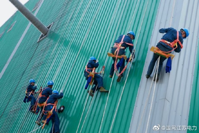 6月5日,國(guó)網(wǎng)江蘇檢修公司所轄正負(fù)800千伏淮安換流站內(nèi),來(lái)自于中能建設(shè)工程集團(tuán)的工作負(fù)責(zé)人師彥超帶著20名員工,在30多米的高空,進(jìn)行換流閥廳室外墻清掃工作。