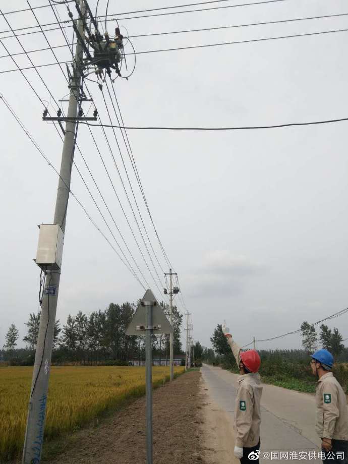 【秋收季節(jié)巡檢忙】10月9日,國網(wǎng)淮安淮陰劉老莊供電所組織運維人員對位于稻田里的10千伏線路、柱上開關(guān)、變壓器、配電箱、桿塔拉線等設(shè)備開展特巡,補裝拉線套管,保秋收大忙季節(jié)供電正常。