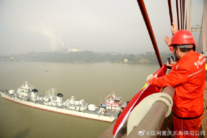 10月23日上午10點20分,剛剛退役的南海艦隊某驅逐艦支隊舷號166的驅逐艦(珠海艦)如約而至到達長壽河街濱江路段。國網(wǎng)重慶長壽供電公司員工,用自己特殊的方式為“珠海艦”接風洗塵。