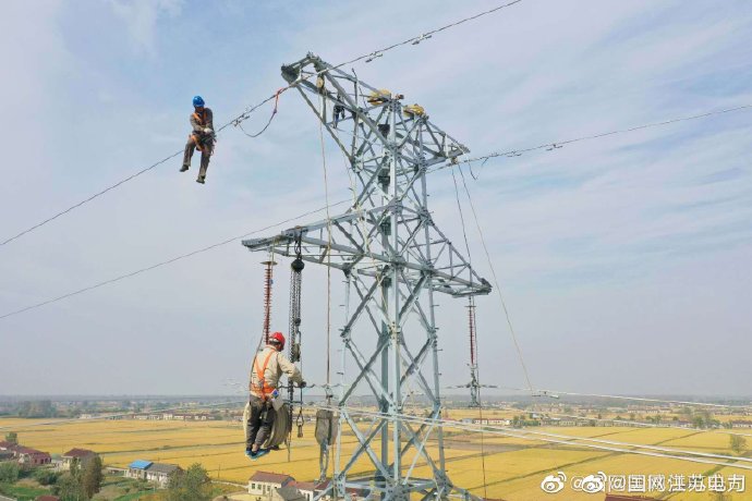【金秋電網(wǎng)施工忙】 10月29日,在220千伏永泰變雙回T接富強(qiáng)至劉莊110千伏輸電線路建設(shè)現(xiàn)場,國網(wǎng)鹽城市大豐區(qū)供電公司作業(yè)人員正在50多米高空組立54號鐵塔及安裝部分鐵塔附件等工作,為工程11月底竣工投產(chǎn)夯實(shí)基礎(chǔ)。 ????