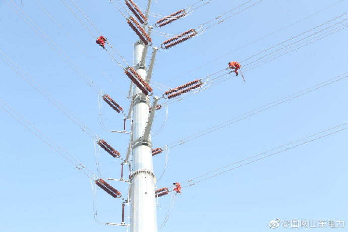 【保質(zhì)量提進(jìn)度 優(yōu)化營(yíng)商環(huán)境】12月9日,220千伏天廣線32號(hào)桿塔處,國(guó)網(wǎng)德州供電公司工作人員對(duì)新建線路進(jìn)行防震錘、間隔棒的安裝作業(yè)。作為德州市區(qū)220千伏輸電網(wǎng)東西聯(lián)絡(luò)的大動(dòng)脈,天廣線的早日建成對(duì)優(yōu)化營(yíng)商環(huán)境具有非同尋常的意義。德州公司克服低溫、施工環(huán)境復(fù)雜等困難,確保高質(zhì)量完成工程建設(shè)。