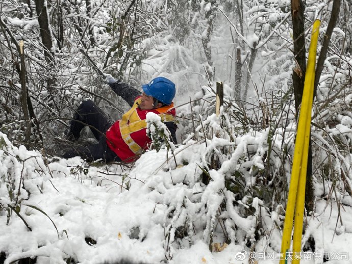 【迎峰度冬】1月17日,國網(wǎng)重慶綦南供電公司南桐供電所工作人員對10千伏林行線天生橋臺區(qū)開展雪后特巡。