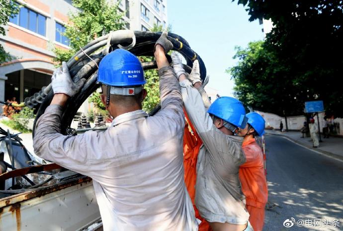 8月4日8時,烈日高照,重慶璧山區(qū)來鳳街道河壩街地表溫度高達45攝氏度。在10千伏四鹿線鹿來支線15-1號電桿,重慶璧山供電公司10余名員工冒高溫,將一臺250千伏安變壓器、兩根電桿、100余米高低壓電纜、配電箱等設施拆除。 ????