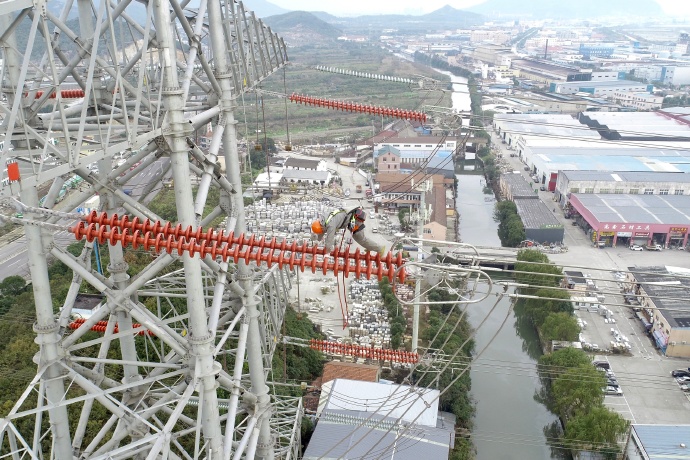 【高空噴涂為線路穿上“紅外衣”】11月29日,國(guó)網(wǎng)寧波供電公司?完成500千伏線路絕緣子PRTV噴涂工作,為768片絕緣子穿上“防污衣”。這是一種新型納米級(jí)氟硅涂料,能提升重污區(qū)和臨海區(qū)線路的防污閃水平,有效防止秋冬線路污閃事故發(fā)生。 ????