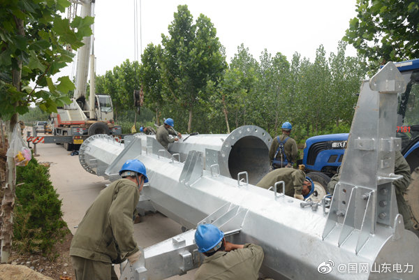【新建線路助力地方經(jīng)濟(jì)發(fā)展】7月10日,國網(wǎng)莒縣供電公司施工人員在莒縣劉官莊鎮(zhèn)10千伏通達(dá)線富強(qiáng)支線組立9號(hào)轉(zhuǎn)角鐵塔。工程投運(yùn)后,將大大提升迎峰度夏期間線路供電能力,為當(dāng)?shù)仄髽I(yè)生產(chǎn)提供充足電力供應(yīng)。 ????