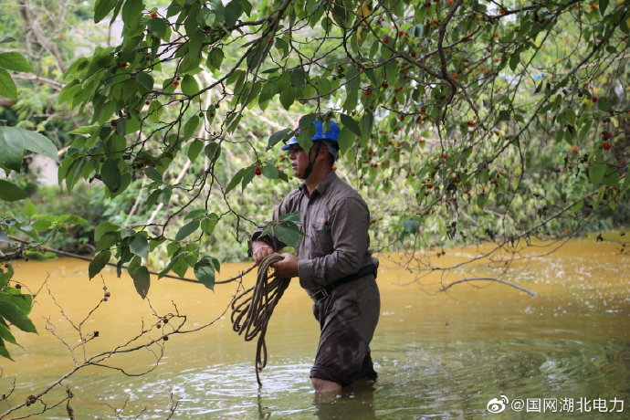 【趟水前進,只為小微企業(yè)用好電】7月19日,國網(wǎng)枝江市供電公司施工人員在問安鎮(zhèn)10千伏大竹園朱家灣4號臺區(qū)9號桿,為秦芳柑桔專業(yè)合作社進行10千伏配電工程施工。在施工過程中,施工人員面對橫在眼前的稻田、果林、房屋和堰塘,越田、跨屋、鉆樹叢。在堰塘旁邊,為防止電纜進水,他們更是用繩索系著電纜跳進水中,小心翼翼地保護電纜越過堰塘和塘邊的灌木叢,只為小微企業(yè)能用好電。