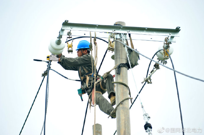 力盡不知熱,但惜夏日長?!?月22日二伏天來臨,預(yù)示著悶熱天氣對我們電網(wǎng)“勇士”的“烤驗”愈演愈烈。背對藍(lán)天,下面如同蒸籠、上面如同火烤,我們的電網(wǎng)“衛(wèi)士”仍然用盡一切力氣揮舞著臂膀,為我們的電網(wǎng)進(jìn)行架線、巡視消缺,他們?nèi)缥寰€譜里跳動的“音符”,在天地間揮灑著汗水。圖為7月22日國網(wǎng)阜城縣供電公司員工在10千伏王海南576線路干線045#桿進(jìn)行導(dǎo)線更換。