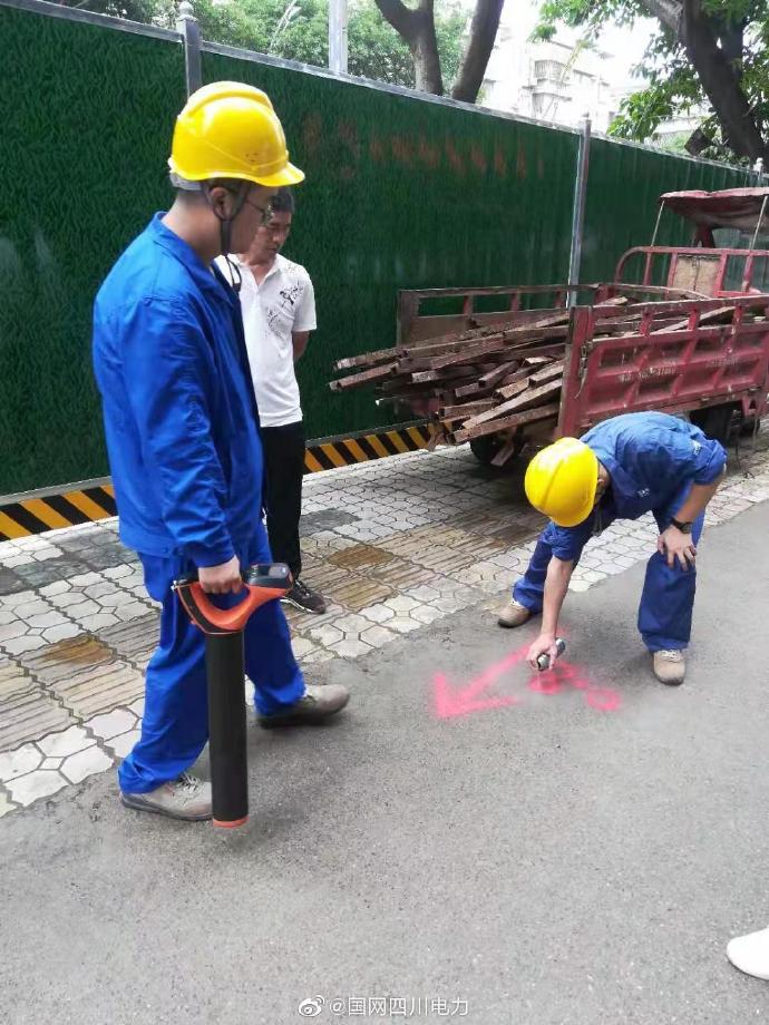 快看,供電叔叔亂涂亂畫(huà)!7月24日上午,國(guó)網(wǎng)南充供電公司員工使用電纜路徑探測(cè)儀在北干道探測(cè)電纜走向,并噴漆標(biāo)記,避免北干道綜合提升改造施工外破挖傷電纜造成停電事故。 ????