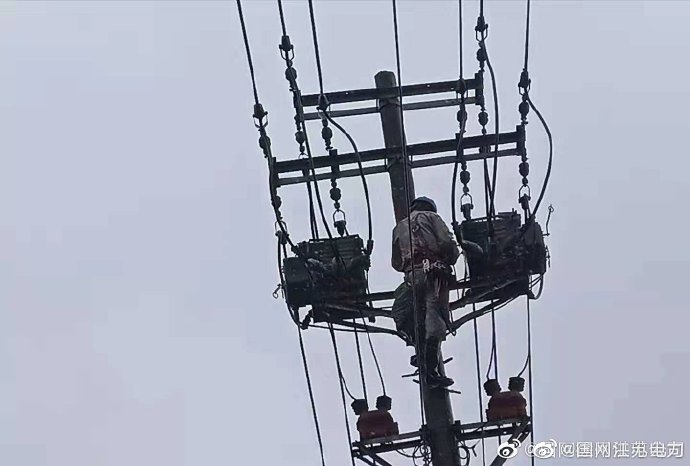 【凌晨迎風(fēng)冒雨登桿快搶修】8月12日4點(diǎn)55分,10千伏富燕線、富工線雙回路38#桿兩臺(tái)柱上開(kāi)關(guān)同時(shí)被雷電擊穿導(dǎo)致近4000戶(hù)居民家中停電,國(guó)網(wǎng)徐州邳州市供電公司緊急調(diào)集應(yīng)急搶修隊(duì)伍前往故障點(diǎn),“急用戶(hù)所急”,冒著大雨加快搶修進(jìn)度,迅速恢復(fù)了線路供電。 ????