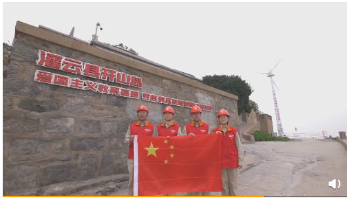 【國旗打卡第二十八站——時代楷模王繼才堅守32年的開山島】國網(wǎng)江蘇電力開山島共產(chǎn)黨員服務(wù)隊員在島嶼泛在電力物聯(lián)網(wǎng)典范、時代楷模王繼才堅守32年的開山島為祖國慶生。歷時6個月,開山島智能微電網(wǎng)及海水淡化系統(tǒng)于6月18日正式建成投運,每年可提供約15萬千瓦時電能、3600余噸淡水,徹底解決開山島缺電少水難題。