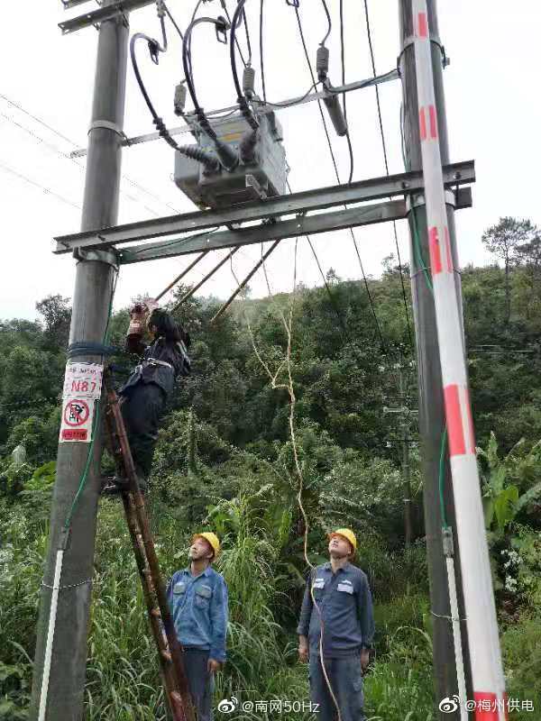 【臺風(fēng)“白鹿”第一現(xiàn)場,供電蜀黍上演“速度與激情”】受臺風(fēng)白鹿影響,雨水仍在繼續(xù),供電設(shè)施部分受到影響。為確保盡快恢復(fù)廣大用戶的正常用電,南方電網(wǎng)廣東梅州興寧局、五華局的供電人員火速集結(jié)出發(fā),到第一現(xiàn)場搶修復(fù)電,為“萬家燈火”保駕護(hù)航。