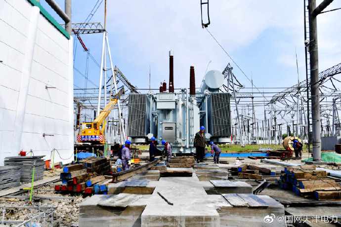 國(guó)網(wǎng)天津檢修公司北郊500千伏變電站4號(hào)主變壓器綜合檢修工作正在如火如荼開展。9月4日,新的4號(hào)主變壓器A相“上臺(tái)”,預(yù)計(jì)下周投入運(yùn)行。 ????