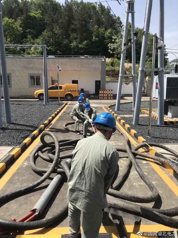5月28日,國(guó)網(wǎng)竹山縣供電公司施工人員在35千伏田家變電站展放10千伏集鎮(zhèn)線電纜。夏季高負(fù)荷用電即將來(lái)到,竹山縣公司決定將變電站10千伏集鎮(zhèn)線原120平方的出線電纜,更換為240平方毫米的粗電纜,保障了竹山縣南部居民及企業(yè)迎峰度夏期間的用電可靠性。