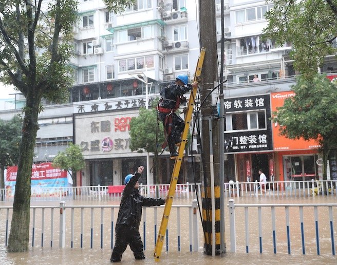 近期,長江流域的強(qiáng)降雨導(dǎo)致多地電力設(shè)施不同程度受損。目前,電網(wǎng)主網(wǎng)運(yùn)行平穩(wěn),受損配網(wǎng)快速開展搶修。
