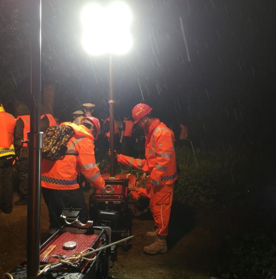 浙江杭州富陽區(qū)供電公司員工在暴雨中為新沙島、五豐島居民提供應(yīng)急照明。黃輝 攝