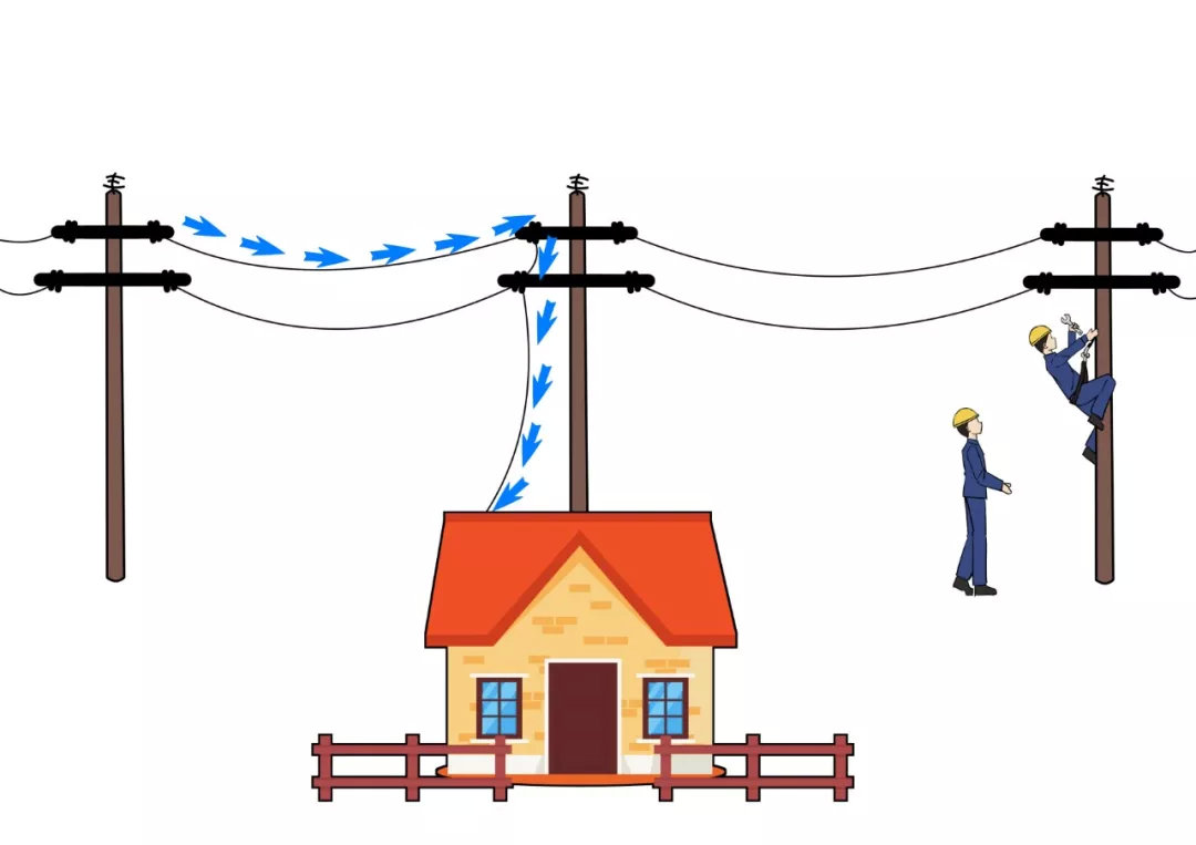 舉例來說,小e的家平時(shí)從A線路供電,也有一條備用的B線路可以供電。當(dāng)A線路需要停電檢修時(shí),電網(wǎng)工作人員就會(huì)把小e的家轉(zhuǎn)交給B線路供電。這樣就在小e家不停電的條件下完成了檢修工作。