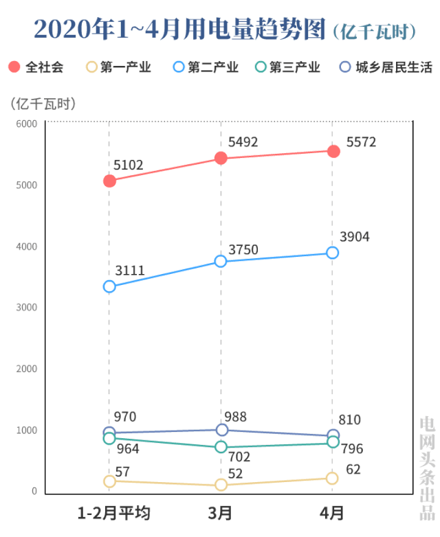 4月份,在國(guó)家電網(wǎng)經(jīng)營(yíng)區(qū),華東、華北、東北區(qū)域全社會(huì)用電量已與去年同期基本持平;西南、西北、華中區(qū)域全社會(huì)用電量已超過去年同期水平,增速分別為3.9%、2.6%、1.3%。
