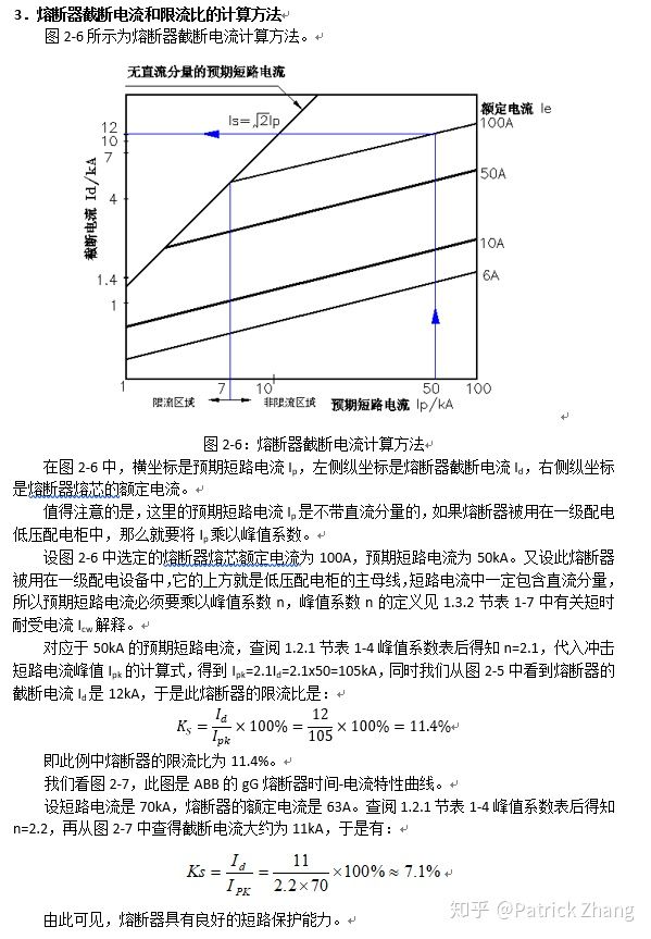 下圖是《老帕講低壓開關(guān)電器技術(shù)》中有關(guān)熔斷器截?cái)嚯娏饔?jì)算方法的節(jié)錄: