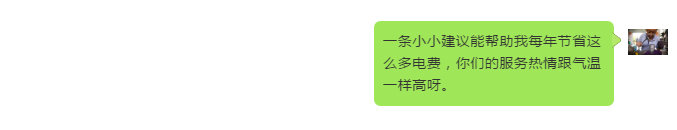 一條小小建議能幫助我每年節(jié)省這么多電費,你們的服務(wù)熱情跟氣溫一樣高呀。