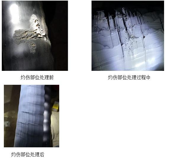 2019年12月1日,對電纜表面灼傷痕跡處進(jìn)行石墨層、碳化層去除時,未發(fā)現(xiàn)外力破壞現(xiàn)象,而且灼傷處為由外向內(nèi)灼傷,灼傷程度較輕。